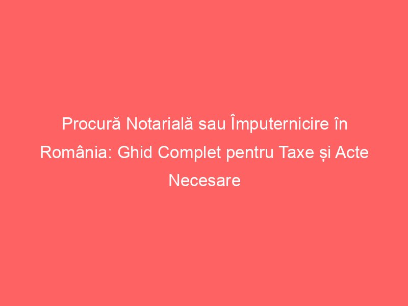 Acest ghid îți va oferi claritate asupra tipurilor de procuri, a actelor specifice necesare și a costurilor aproximative, asigurându-te că ai toate informațiile la îndemână pentru a economisi timp și a evita drumurile inutile la notariat. Vei fi pregătit să acționezi cu încredere și să delegi sarcinile tale legale, beneficiind de expertiza notarială. De exemplu, costurile pentru o procură simplă pot începe de la aproximativ 100-120 RON, iar procesul de obținere durează, în medie, 15-30 de minute dacă ai toate documentele pregătite.
