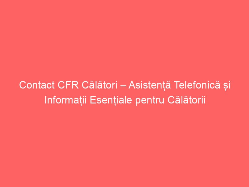 Contact CFR Călători – Asistență Telefonică și Informații Esențiale pentru Călătorii fără Griji Navighează eficient prin serviciile feroviare: găsește rapid numere de contact, soluții online și asistență personalizată. Ai nevoie urgentă de Contact CFR Călători pentru asistență sau informații despre călătoria ta? Indiferent dacă ești în căutarea unui orar, vrei să depui o reclamație sau