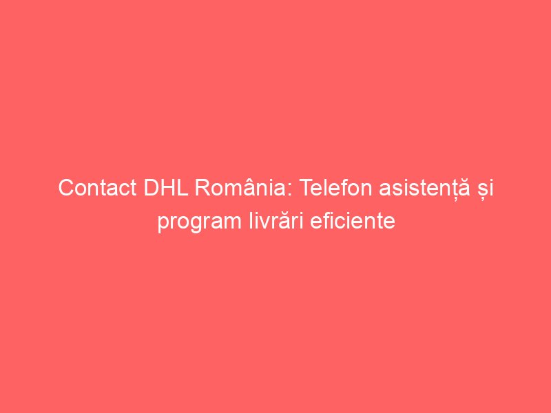 Contact DHL România: Telefon asistență și program livrări eficiente Ghidul complet pentru a naviga serviciile DHL Express, Freight și eCommerce, asigurând soluții rapide pentru expedierile dumneavoastră. Te-ai trezit cu un colet blocat în vamă, ai nevoie să programezi urgent o preluare sau pur și simplu nu știi cum să ajungi la un operator DHL din